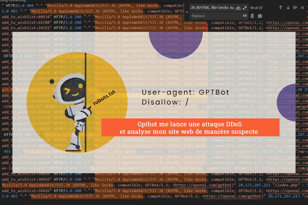 - 10:12 : Début d’un trafic anormal depuis un user-agent identifié comme bot IA